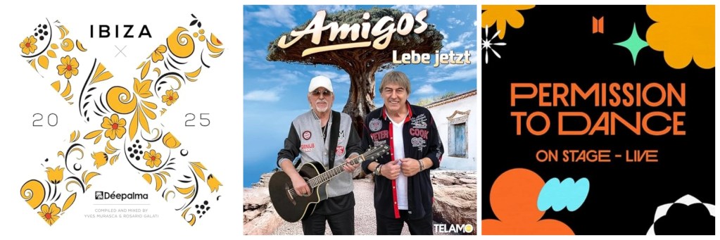 Den Auftakt macht die Compilation „Déepalma Ibiza 2025„, die mit einer dreiteiligen DJ-Mix-Reise das Lebensgefühl der Balearen aufgreift. Zwischen chilligen Soul-House-Klängen, groovigem Deep House und energiegeladenem Clubsound liefert der neue Sampler einen Soundtrack für Sonnenuntergänge, durchtanzte Nächte oder entspannte Sommerabende. Nicht nur für die sommerlichen Beach-Clubs, sondern auch für die regionalen Kirmes-, Kerb- oder Dorffeste wird für Stimmung gesorgt. Die Amigos liefern mit „Lebe jetzt“ ein weiteres Kapitel ihres typischen Mixes aus Herzschmerz, Lebensfreude und Alltagspoesie. Zwischen sanften volkstümlichen Schlagerrhythmen und großen Gefühlen steht ihre Botschaft klar im Vordergrund: Das Leben findet im Hier und Jetzt statt. Ganz im Hier und Jetzt angesagt ist auch die K-Pop-Boygroup BTS, die mit ihrem neuen Livealbum „Permission to Dance on Stage“ die euphorische Stimmung ihrer internationalen Stadiontour festhält. Zwischen Fanchören, glitzernden Popmomenten und berührenden Balladen wird deutlich, wie sehr Musik Menschen weltweit verbinden kann.