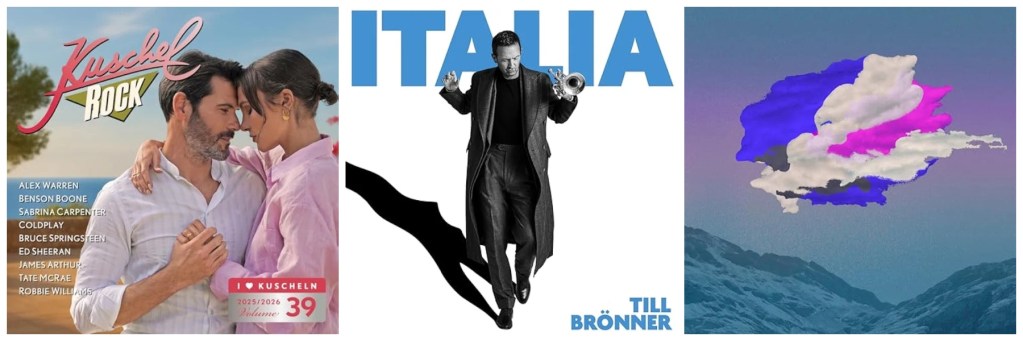Auf dem deutschsprachigen Markt liefert der Sampler „Kuschelrock Vol. 39“ wieder einmal romantische Evergreens und gefühlvolle Hits, die alle Facetten der Liebe vom Liebeskummer bis zum Kuscheln abbilden, darunter Songs wie „Ordinary“ von Alex Warren, „Messy“ von Lola Young oder „Die with a Smile“ von Lady Gaga & Bruno. Die ganz großen Hits aus der goldenen Ära des italienischen Sounds der 1960er bis 1980er Jahre präsentiert Till Brönner auf seinem neuen Album „ITALIA“ und lässt mit warmen Bläsern, eleganten Arrangements und sinnlicher Jazz-Stimmung mediterranes Flair und zeitlose Eleganz mitschwingen. Ganz im Einklang mit dieser stilvollen, atmosphärischen Ausrichtung entführen Namaka auf ihrem Album „Cloudspotting“ mit Lo-Fi- und Synth-Pop-Elementen weg von dem Boden des Alltags in ein ganz eigene sphärische Klangwelt, die einen Blick auf den eigenen Umgang mit der Welt wirft.